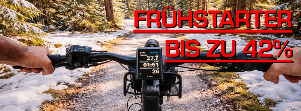 Frische klare Luft, die ersten Sonnenstrahlen machen Lust! Hol dir bereits jetzt ein erstklassiges E-Bike aus der Vorsaison zu Preisen die es dir eiskalt den Rücken runter laufen lässt. Unsere Frühstarter Angebote 2026 – Tolle Rabatte auch für einige Leasing-Bikes*!